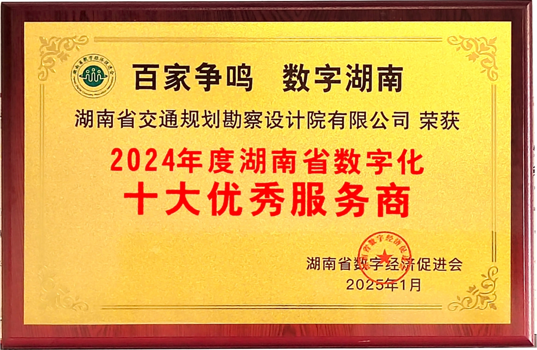 MORE1月4日,“2025長江數(shù)字經(jīng)濟發(fā)展大會暨第五屆湖南省數(shù)字經(jīng)濟論壇”在湖南長沙舉行,湖南省工業(yè)和信息化廳黨組成員、總經(jīng)濟師熊琛出席大會并講話。湖南省交通規(guī)劃勘察設計院有限公司榮膺“2024年度湖南省數(shù)字化十大優(yōu)秀服務商”,也是省屬國企中唯一一家入選企業(yè),彰顯了其在數(shù)字...